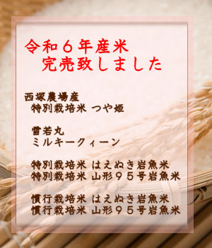 【令和6年産 特別栽培米 山形95号】 西塚農場 Yahoo!ショッピング店 ■特別栽培米 山形95号 ページへ移動 |